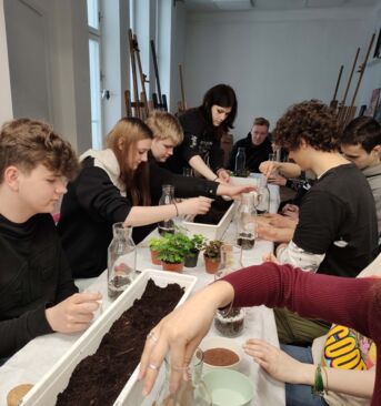 W dniu 21 kwietnia klasy 2GO i 2BH uczestniczyły w warsztatach „Las w szkle” w Sztukarni. W radosnej atmosferze uczniowie dowiedzieli się, jak własnoręcznie wykonać ekosystem zamknięty w szklanym naczyniu tak, aby funkcjonował i cieszył przez długie lata.