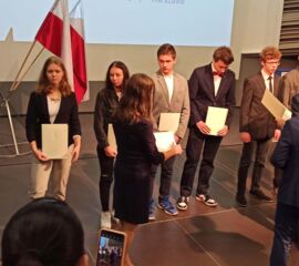 W dniu 30.11.2022r. w Auli Menedżerskiej Akademii Nauk Stosowanych przy ulicy Kawęczyńskiej 36 w Warszawie odbyło się uroczyste wręczenie uczniom szkół ponadpodstawowych Stypendium Prezesa Rady Ministrów. Z naszej szkoły stypendium otrzymały uczennice Wiktoria Gruda z kl. 4ET-p oraz Oliwia Kurek z kl. 4ET, które w ubiegłym roku szkolnym uzyskały najwyższe wyniki w nauce i wzorowe zachowanie.