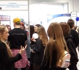 Na naszym stoisku obecni byli obecni również Uczniowie i Uczennice, odpowiadający na wiele pytań dotyczących praktycznych aspektów nauki w THTG na Krasnołęckiej. Zainteresowanie Naszą Szkołą wynikało nie tylko z ciekawych kierunków i perspektyw kariery zawodowej, lecz także z dogodnej lokalizacji i atmosfery.