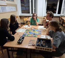 3 października odbył się szkolny wieczorek z planszówkami, pełen emocji, uśmiechu i dobrej zabawy. Uczniowie wraz z kadrą szkoły udali się w pełną współpracy a czasem i rywalizacji podróż w świat gier RPG, strategii i elementów fantasy. W ciągu 4 godzin, przy dwóch stołach udało się rozegrać partie w Smallworld, Descent - Wędrówki w Mroku, Karak, Wsiąść do pociągu - Europa oraz Ryzyko.