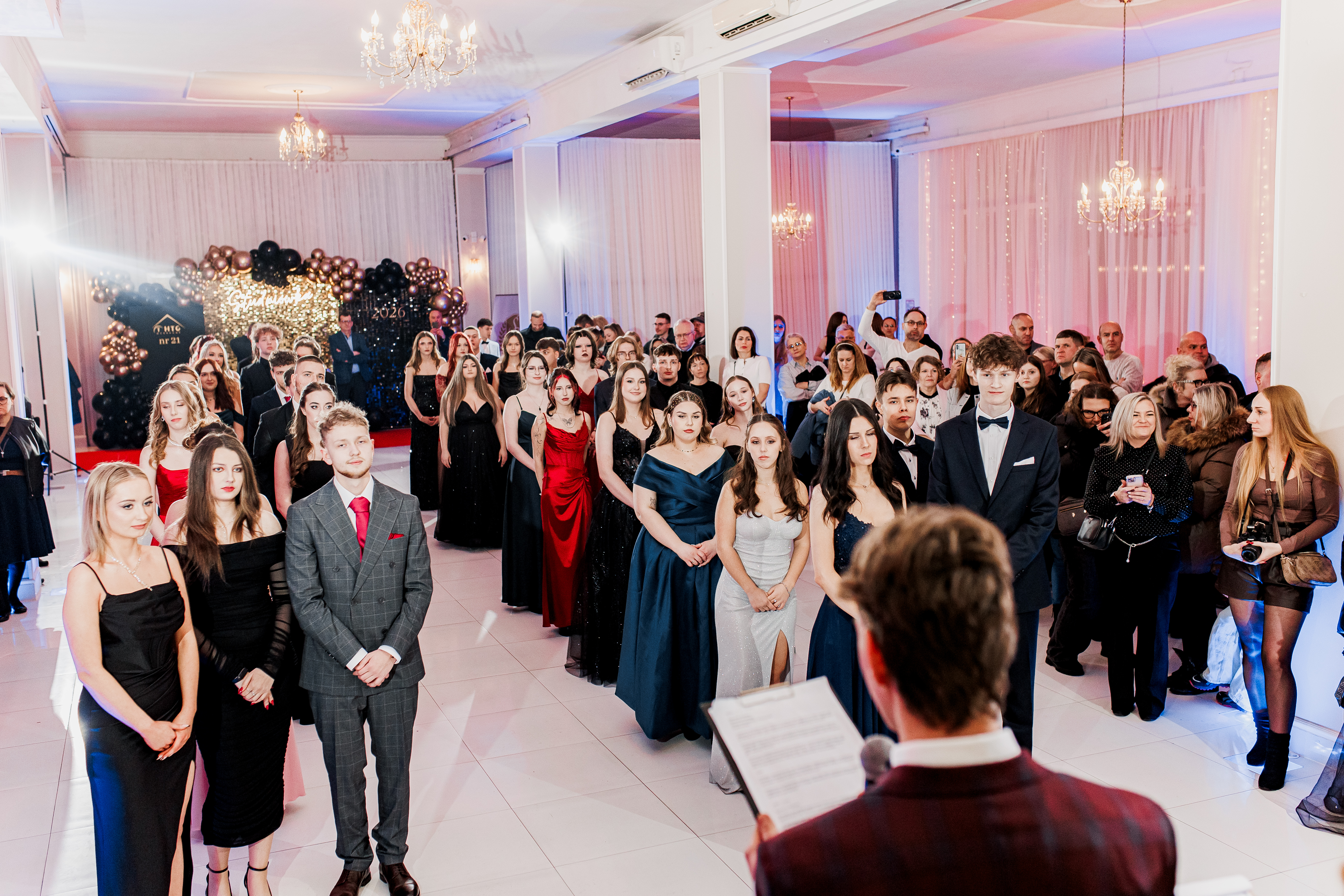 Gratulacje i życzenia złożyli wicedyrektorzy szkoły: pani Iwona Michniewicz oraz pan Adam Gardyna, życząc wspaniałej zabawy i wielu niezapomnianych wspomnień.
